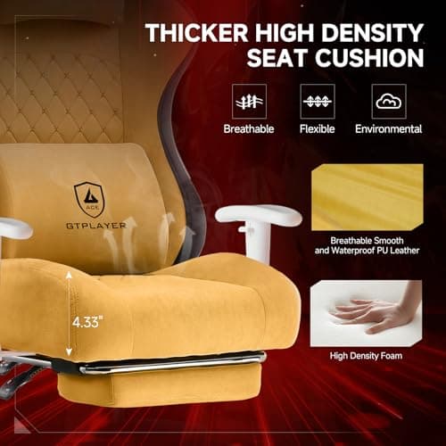 Ntiibcuy Ergonomic Gaming Chair with Footrest in PU Leather | Adult Gamer/Office Chair with Lumbar Support & Reclining Feature for Comfortable, Heavy Use