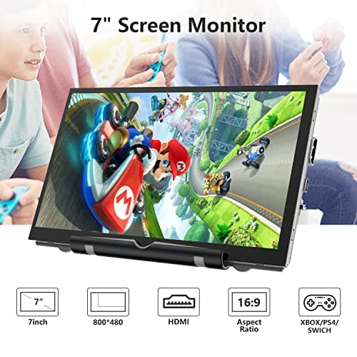 7 inch Small HDMI VGA AV RCA Monitor 1080P Second Screen for PC/Security System/Game Console; IPS 1024X600 Pixels; 60HZ; Built in Loud Speakers & Earphone Jack; 12V USB Power Cable for Portable Use