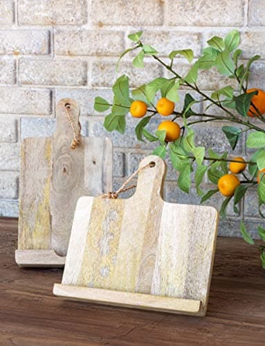 Twine Cookbook Stand, Acacia Wood Tablet Stand, Recipe Book Holder, Rustic Kitchen Decor Countertop Display, Acacia Wood, Set of 1