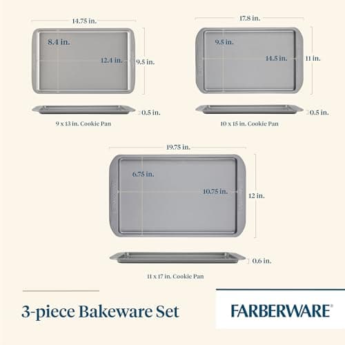 Farberware Nonstick Bakeware 3-Piece Cookie Pan Set, Gray