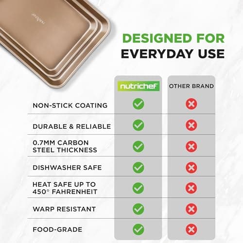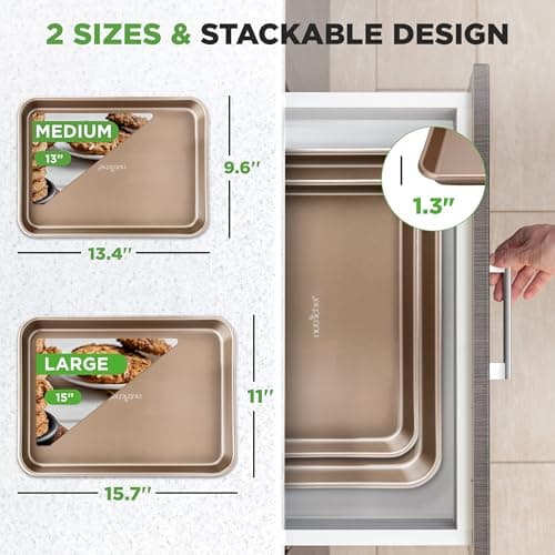 If you are choosing by quantity or footprint, compare 2-piece set, baking sheet set, half sheet, and single sheet. Use the feature-priority pages when cleanup or durability matters more than format, especially easy-release nonstick and heavy-duty durability.