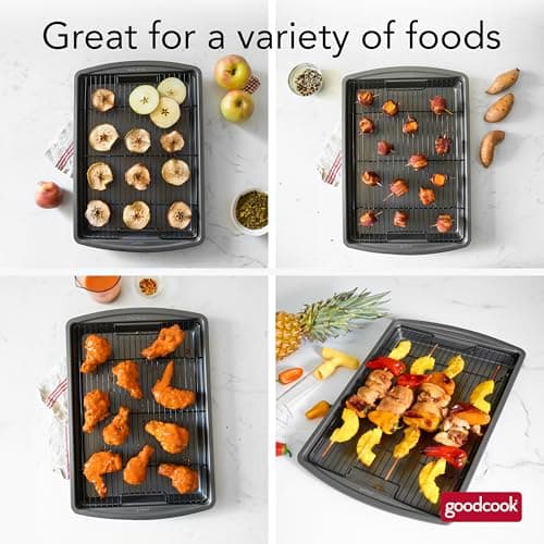 GoodCook 15” x 10.5” Nonstick Carbon Steel Baking Pan & Raised Wire Rack – Pizza Crisper, Crispy Bacon, Multipurpose Cooking Sheet Pan, Cooling Rack, Kitchen Cookware Set, Dishwasher Safe