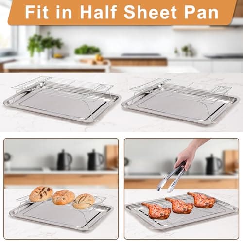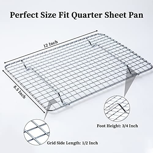 Ultra Cuisine Oven-Safe, Dishwasher-Safe 100% Stainless Steel Cooling & Baking Rack Set - Tight-Wire Bake for Oven Cooking - Heavy Duty - 8.5x12 - Set of 2 - Small Quarter Sheet Pan Cooling Racks