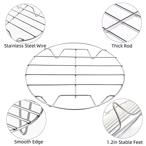 TamBee 7 Inch Round Cooking Rack Air Fryer Rack Cooking Steaming 304 Stainless Steel Round Rack Cross Wire w Stand Cookware for Air Fryer Pressure Cooker Canning 2Pcs(2,7Inch)