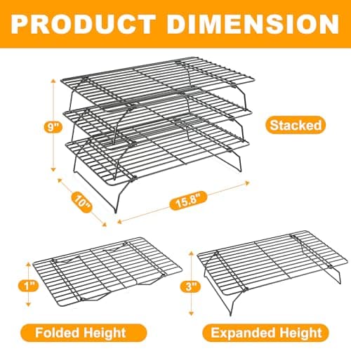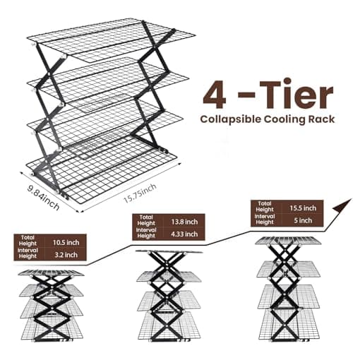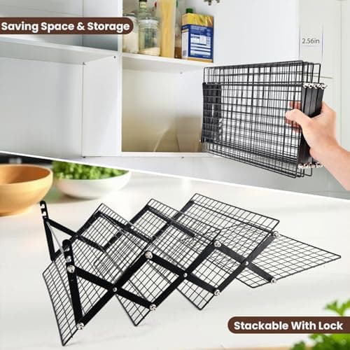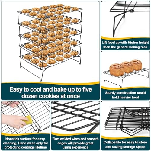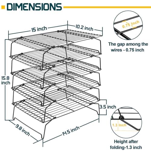 P&P CHEF Cooling Rack, 5-Tier Stainless Steel Stackable Baking Cooking Racks for Cooling Roasting Grilling, Collapsible & Heavy Duty, Oven Safe & Easy Clean, 15" x 10", Black