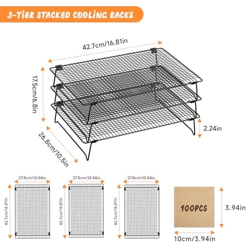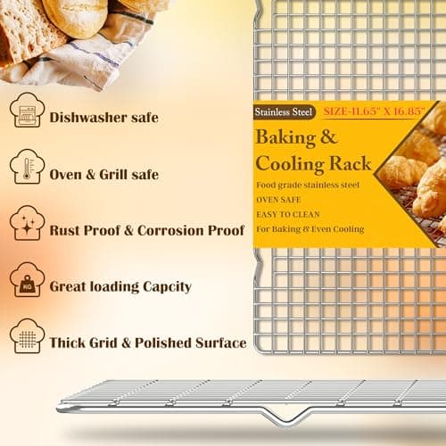 Mlintech Cooling rack,2-Pack Heavy-Duty Stainless Steel wire rack for cooking (16.5"x11.5") - Oven Baking Wire Rack for Sheet Pans, Bread, Dishwasher Safe & Non-Toxic Metal Grates