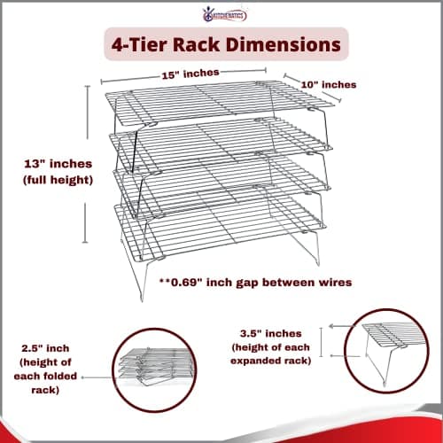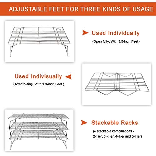 P&P CHEF Cooling Rack, 5-Tier Stainless Steel Stackable Baking Cooking Racks for Cooling Roasting Grilling, Collapsible & Heavy Duty, Oven Safe & Easy Clean, 15" x 10", Silver