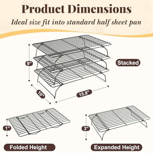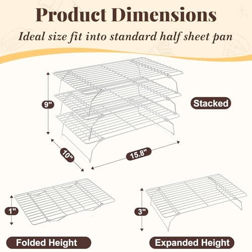 KITCHENATICS Half Sheet Cooling Racks for Cooking and Baking, Stainless Steel Wire Rack for Baking Sheet, Bacon Rack for Oven, Heavy-Duty Wire Cookie Cooling Rack fits Half Sheet Pan, 11.8 x 16.9 IN