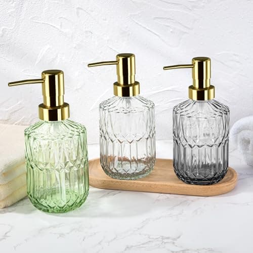Cutiset Bathroom Accessories Set, 15oz Glass Soap Dispenser Bottle for Bath Decor, 3 Pack Set