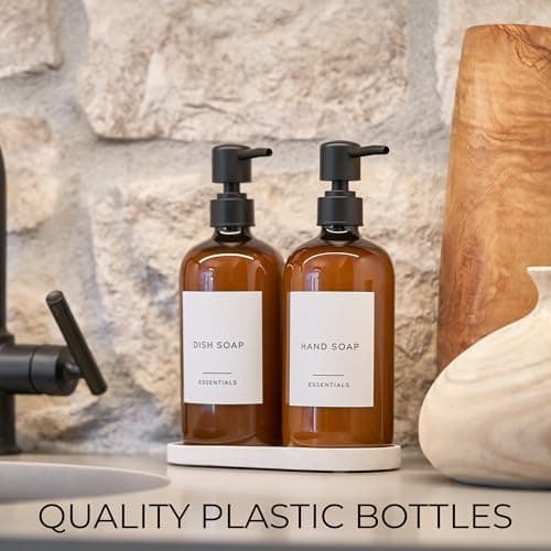 Stylish Soap Dispenser Set of 2 for Kitchen Or Bathroom - Quality 21oz Dish and Hand Soap Dispensers - Extra Durable Amber Dispensers Perfectly Enhance Your Bathroom Or Kitchen
