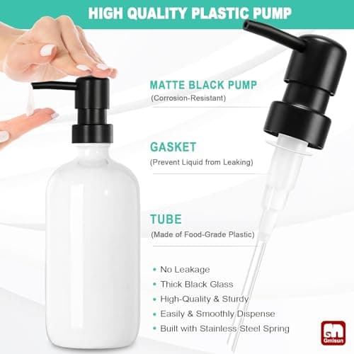 GLADPURE 2 Pack Soap Dispenser, 18 Oz Antique Design Thick Glass Hand Dispensers; with 304 Rust Proof Stainless Steel Pump, 6Pcs Clear Stickers, for Kitchen, Bathroom- Black
