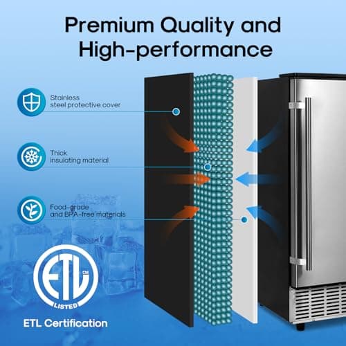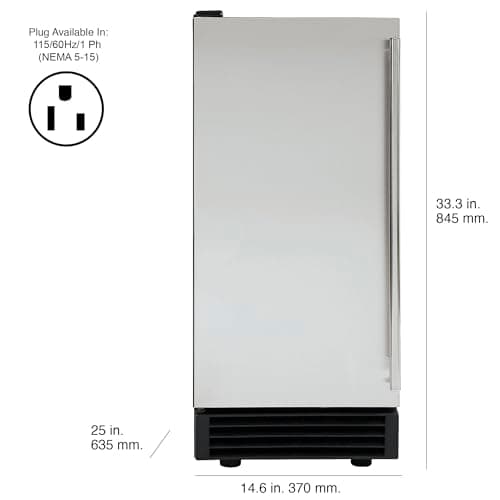DUURA DI50 60Lb Premium Energy Star Clear Ice Cube Maker Machine for Built-in Undercounter or Freestanding Household Residential or Commercial Use, 15 Inch Wide, Silver