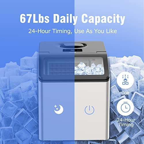 Soopyk Commercial Countertop Ice Maker Machine with Water Line Self-Cleaning 67lbs Daily Capacity for Home Stainless Steel