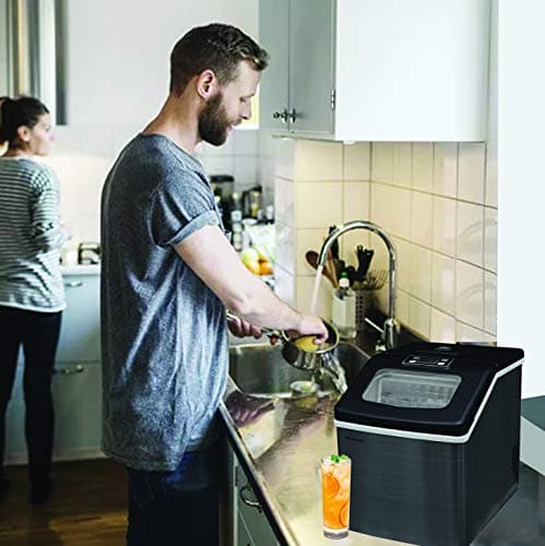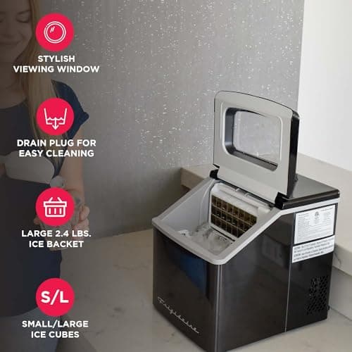 Frigidaire Ice Maker EFIC452, Countertop Stainless Steel Ice Maker with Transparent Window, Clear Ice Cube Maker with 40 lbs. Capacity, Ice Maker Machine – 14.8" D x 11" W x 14.1" H (Black)