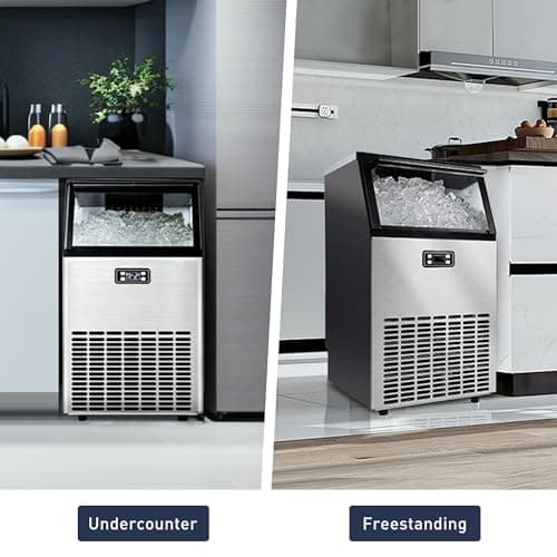Kismile Commercial Built-in Ice Maker Machine,80Lbs/Day,Under Counter Ice Cube Maker with Drain Pump & 24H Timer,Reversible Door,Built-in Freestanding Ice Maker for Home & Office(Silver)