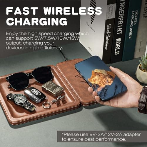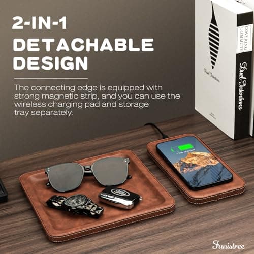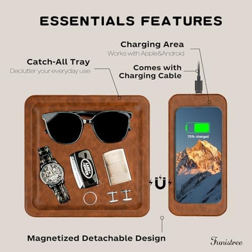 Gifts for Men Dad Husband from Daughter Son Wife, PU Leather Wireless Charging Station and Valet Tray, Easter Present Stocking Stuffers, Boyfriend Anniversary Birthday Gifts for Him