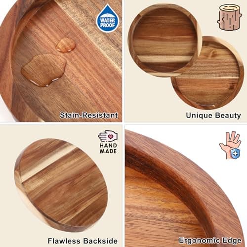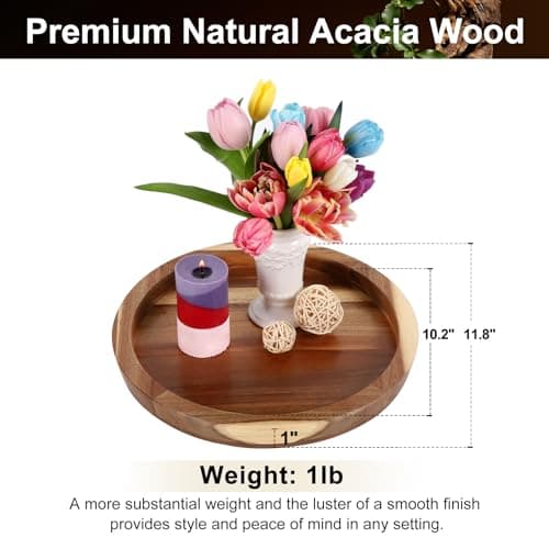 11.5 Inch Small Wood Round Decorative Tray for Home Decor, Coffee Table, Dining Table, Kitchen Island, Bathroom Counter