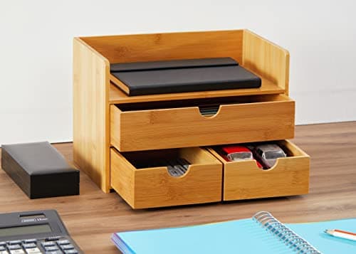 - Bamboo / Wood desk organizer with drawers