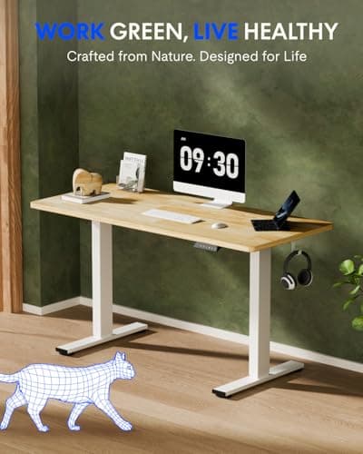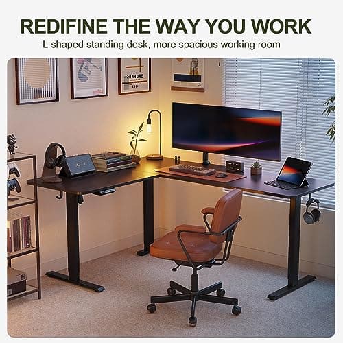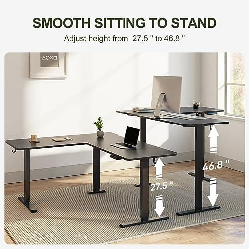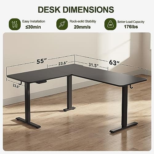 Desky 72" L-Shaped Electric Standing Desk, Natural Timber Top, Matte Black Frame – Corner Standing Desk with Triple Motor & Memory Presets, Ergonomic L Desk for Home Office