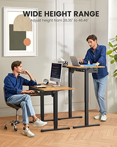 FEZIBO Standing Desk with Keyboard Tray, 55 x 24 Inch Adjustable Height Sit Stand Desk with Memory Presets for Home Office, Ergonomic Computer Workstation, Rustic Brown