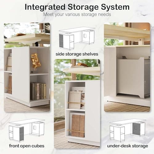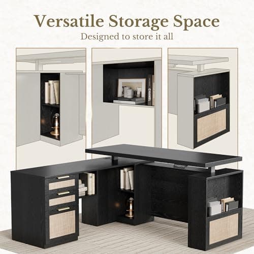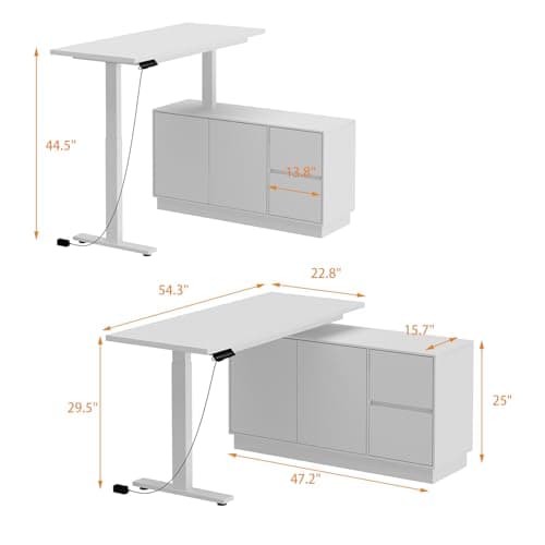 ONNAHOMEStlyle 70.87IN Adjustable Heigh L Shaped Executive Desk w/Cabinet Storage, Modern Computer Standing Home Office Desk w/File Cabinet, AC/USB, Large Writing Table Business Workstation