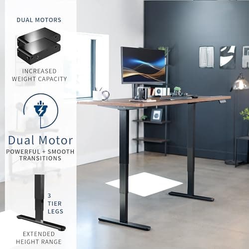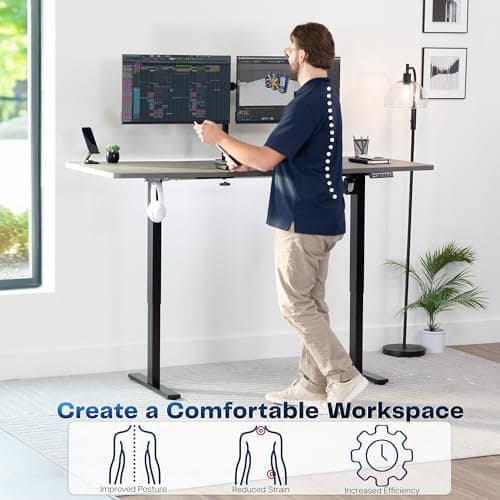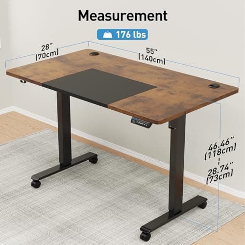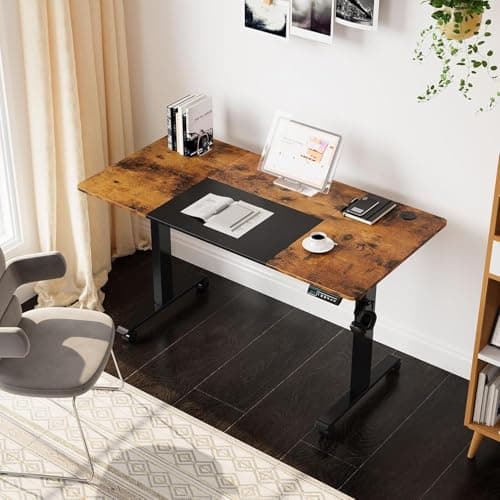 Claiks Electric Standing Desk, Adjustable Height Stand up Desk, 24x48 Inches Sit Stand Home Office Desk with Splice Board, Black Frame/Rustic Brown Top