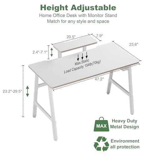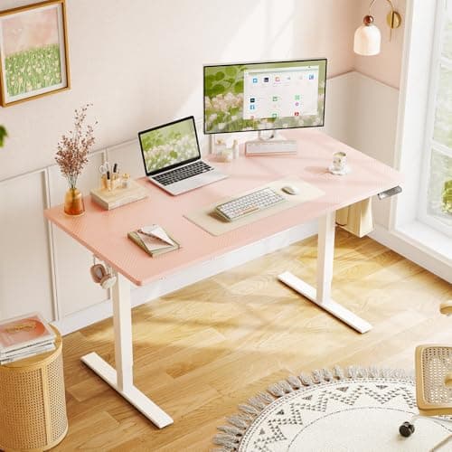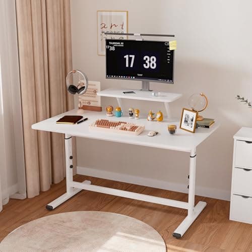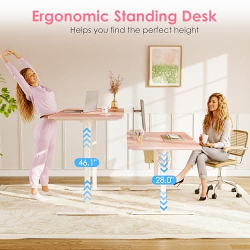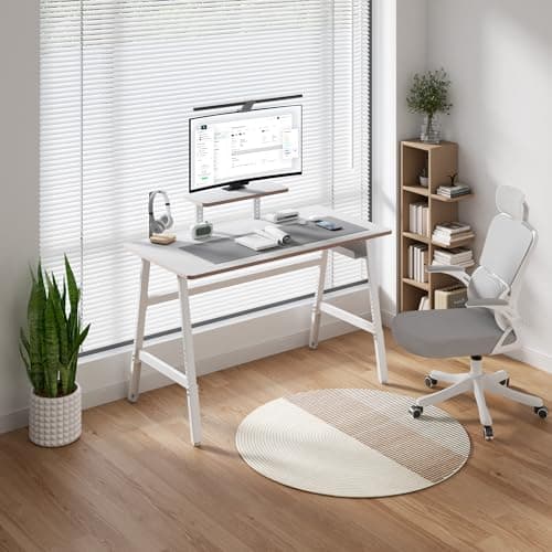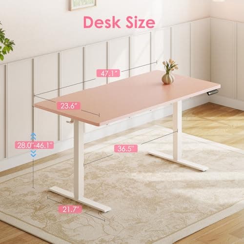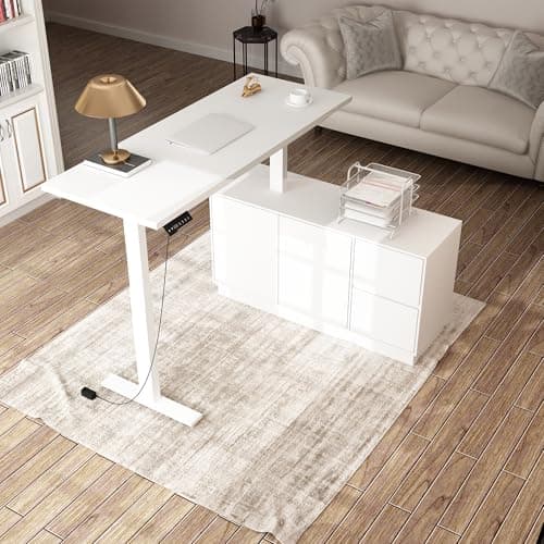 Smug Adjustable Height Electric Standing Desk Sit Stand Up Computer Table Ergonomic Rising Modern Lift Motorized Gaming Desktop Workstation for Work Home Office, 39.4x23.6 Inches, Modern White