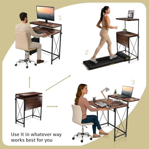 Need Folding Desk Small Desk 31 1/2" No Assembly Foldable Computer Desk for Small Space/Home Office/Dormitory,Teak&Black Frame