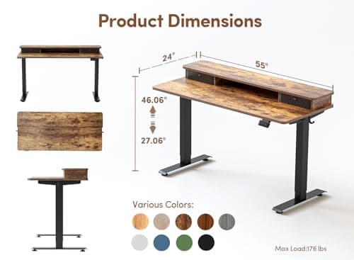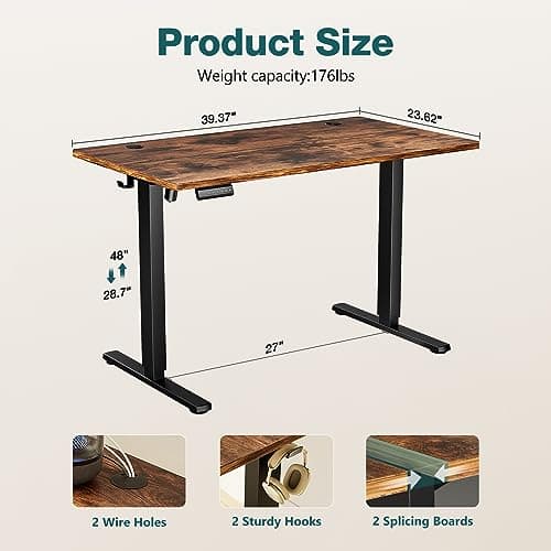 Simple Deluxe Electric Standing Desk, 24x40 Inches, Rustic Brown, Ergonomic Rising Computer Table with Memory Preset