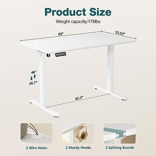 InfiniPower Electric Standing Desk, Adjustable Height Stand up Desk, 24x63 Inches Sit Stand up Desk with Cable Management, Memory Computer Home Office Desk, White