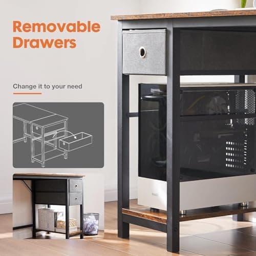 Huuger Computer Desk with 6 Drawers, Office Desk with Shelves, Reversible Gaming Desk, Corner Desk with Storage, Work for Home Office, Study, Living Room, 47inch, Rustic Brown