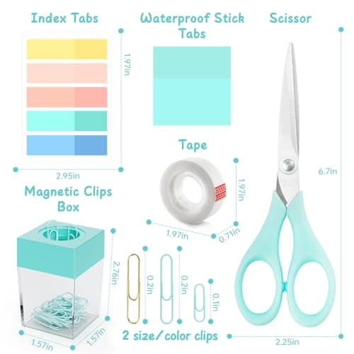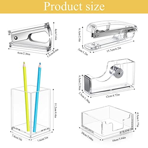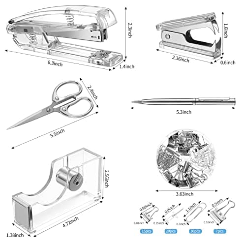COMFYROOM Desk Accessories with Pen Holder, Office Supplies Desk Organizers and Accessories, Tape Dispenser, Stapler, Staple Remover, Staples, Clips Set, Ruler, Scissor, Pen, Tape (White)