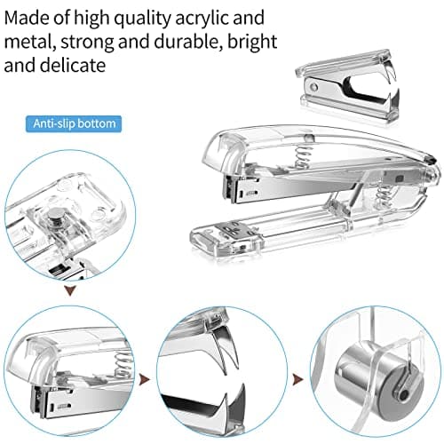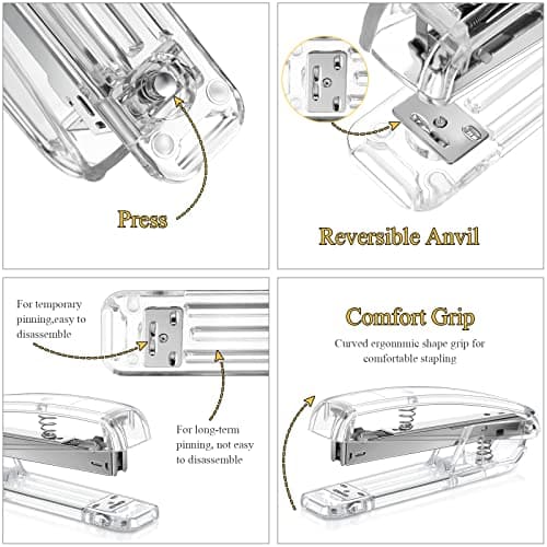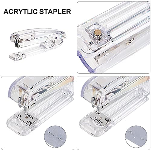 SEAKOS Acrylic Originality Stapler,Fashion Transparent Shape,Office and Home Student Stapler,Quality Spring,Durable Acrylic,Free 1000 26/6 Staples,(Multicolor)