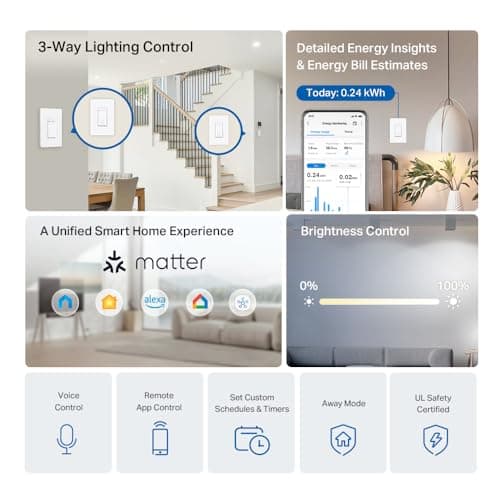 TP-Link Tapo Smart 3 Way Dimmer Switch KIT, Matter Compatible, Energy Monitoring, Neutral Wire Required, Works with Alexa, Siri, Google Home, SmartThings, UL Certified, 2.4GHZ Wi-Fi, Tapo S515D KIT