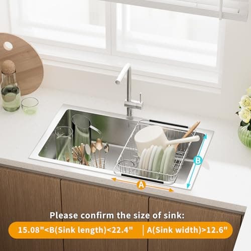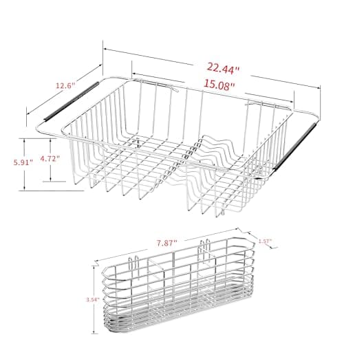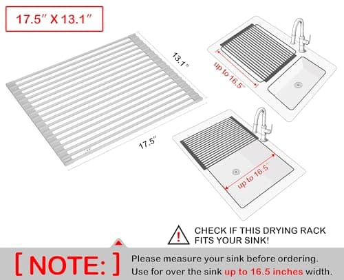 MECHEER Over The Sink Dish Drying Rack, Roll Up Dish Drying Rack Kitchen Dish Rack Stainless Steel Sink Drying Rack, Foldable Dish Drainer, 17.5''x11.8''