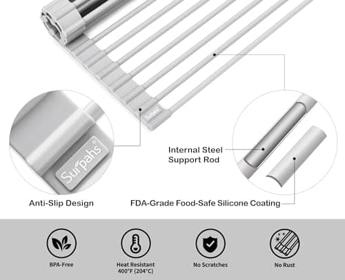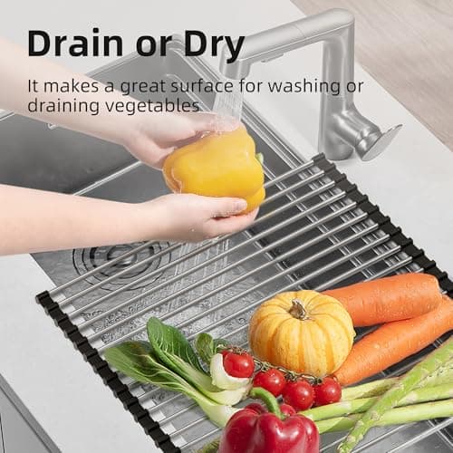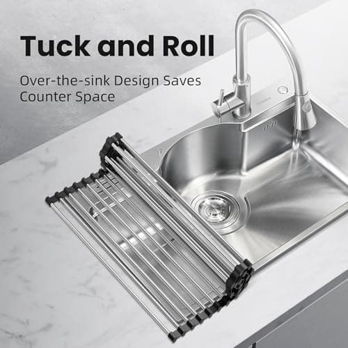 Seropy Roll Up Dish Drying Rack Over The Sink Drying Rack for Kitchen Counter, Rolling Dish Rack Over Sink Mat, Foldable Dish Drainer Stainless Steel Rack Kitchen Organization Gadgets 17.5"x11.8"