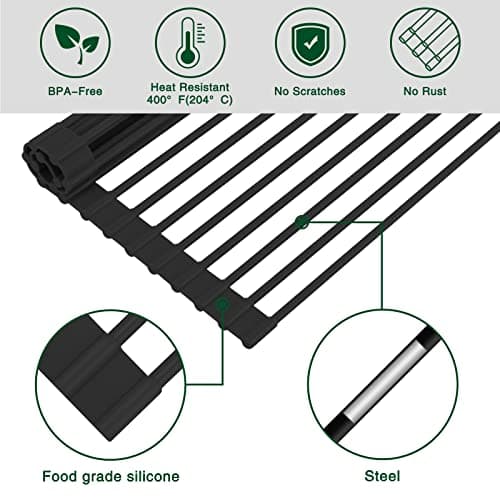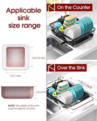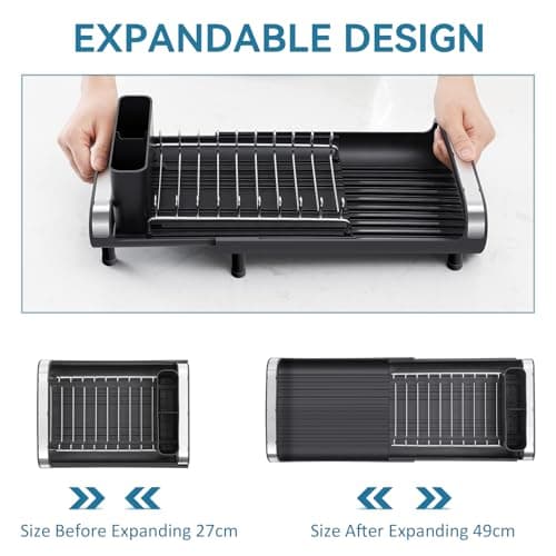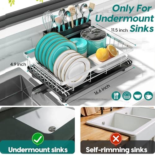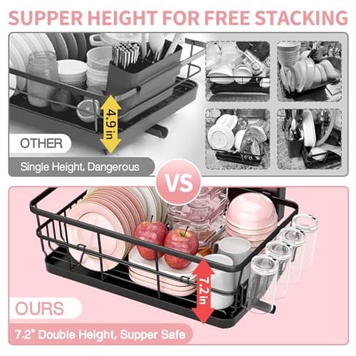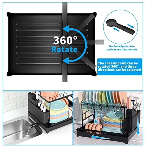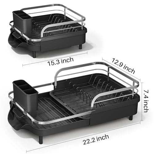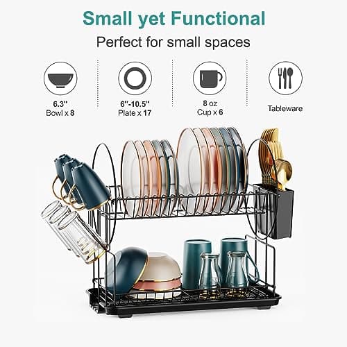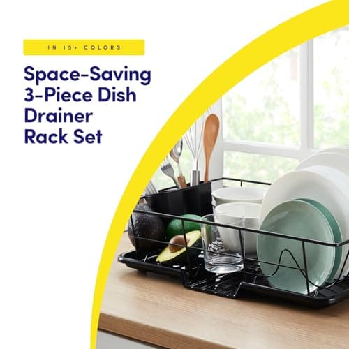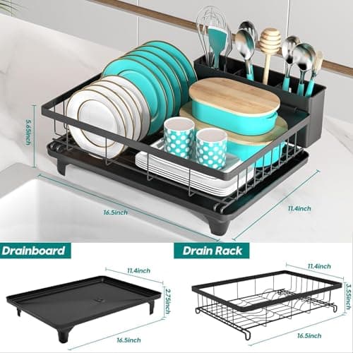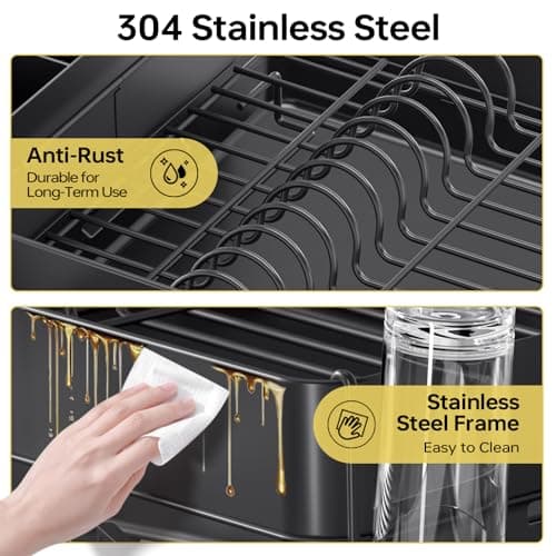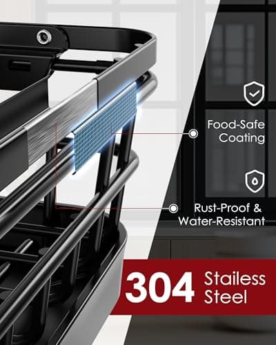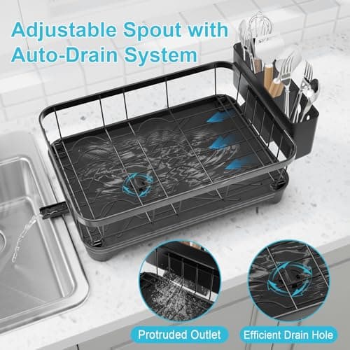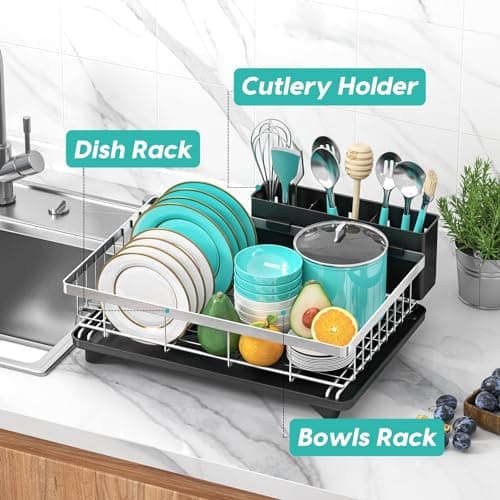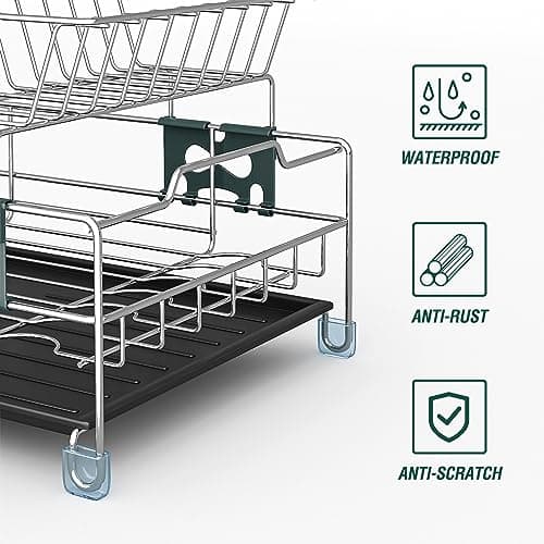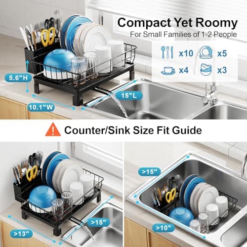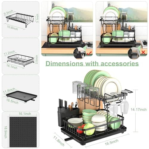 Kitsure Dish Drying Rack for Kitchen Counter, Stainless Steel Sink Organization and Storage Essentials with Cutlery Holder, Home and Appartment Decor, 12''W x 15.5''L, Black