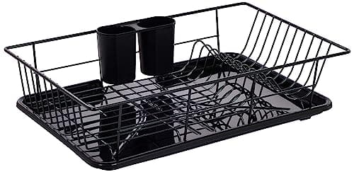 Sakugi Stainless Steel Dish Drying Rack for Kitchen Counter, Sink Organization and Storage Essentials with Silverware & Utensil Holder, Home and Apartment Decor, 12''W x 15.5''L, Black