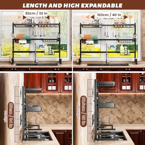 YKLSLH 4 Baskets Over The Sink Dish Drying Rack, Extendable Large Capacity Sink Rack, Metal Drying Rack Saving Space,for Most Sinks (26.57"-35")