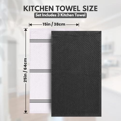 Homaxy 100% Cotton Terry Kitchen Towels(Black, 13 x 28 inches), Checkered Designed, Soft and Super Absorbent Dish Towels, 4 Pack