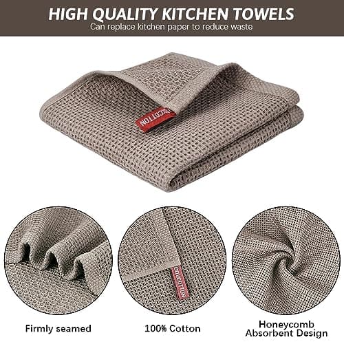 Homaxy 100% Cotton Waffle Weave Kitchen Dish Cloths, Ultra Soft Absorbent Quick Drying Dish Towels, 12 x 12 Inches, 6-Pack, Dark Grey