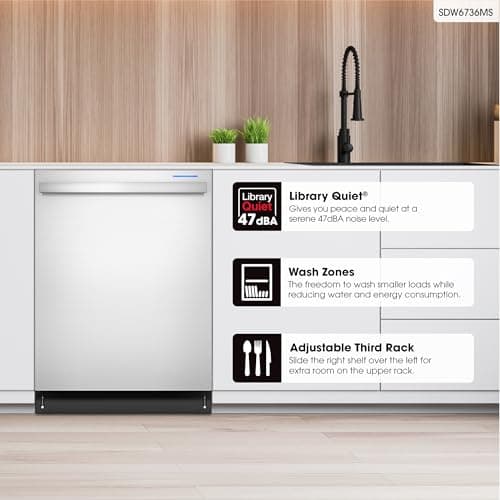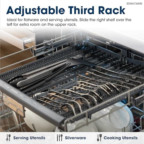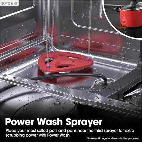 Sharp SDW6726MS 24-inch Stainless Steel Dishwasher, 47 dB Library Quiet, Third Rack, Power Wash Sprayer, 12 Place Settings,