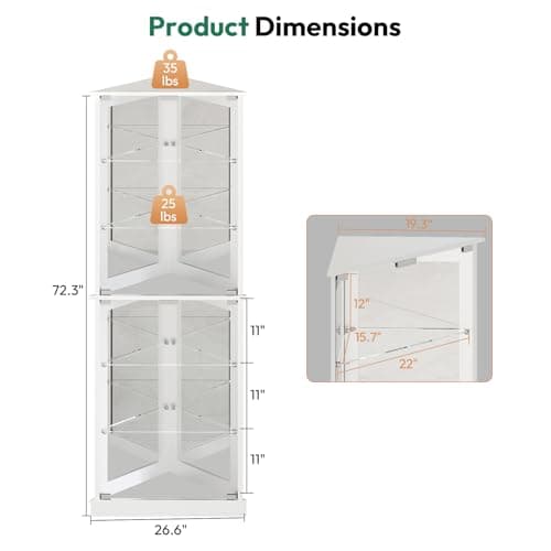 Lareth Display Cabinet with Glass Doors, 69 in Tall Bookcase with LED Lights, Glass Display Case Kitchen Pantry Cabinet, 5 Tier Curio Storage Cabinet for Living Room, Home Office, White