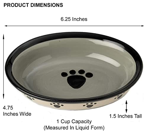Waggo Dipper Ceramic Dog Bowl for Small and Large Breeds - Heavyweight and Durable Pet Food and Water Dish Crock, Dishwasher Safe, Modern (Vintage Grey, Medium)