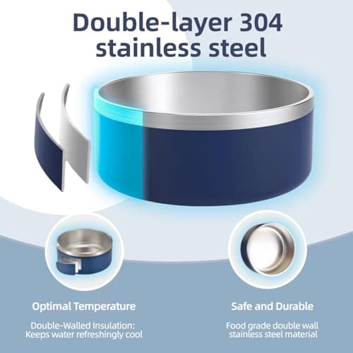 BAEKYO Dog Bowls Small Sized Dogs-Medium Sized 1.2l/42oz Double Layer Stainless Steel Outdoor Dog Water Bowl,Puppy Insulated Food Bowl,with Non-Slip Bottom and 1pc 8oz Food Scoop (Blue, 42 oz)
