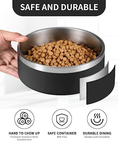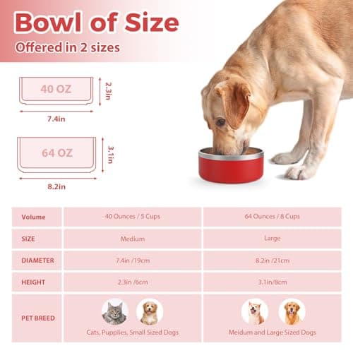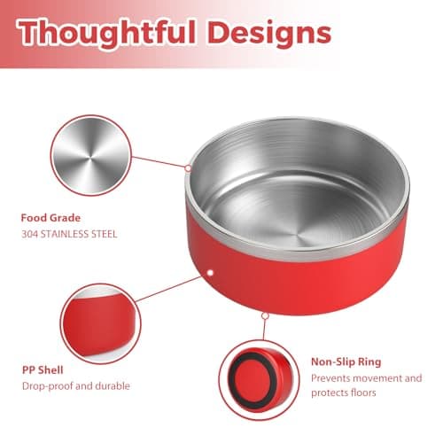 LIHOOOOM Stainless Steel Dog Bowls for Large Dogs - Metal Pet Dish, Water & Food, Insulated & Non-Slip, Easy to Clean, 64oz, Red