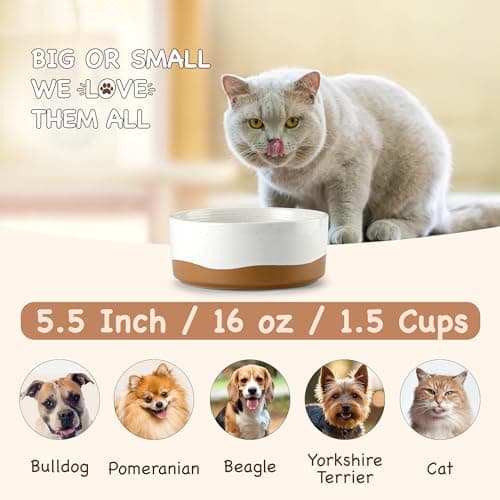 Mora Ceramic Pet Bowl Size Small - Food/Water Dish for Puppy Dogs, Cats, Guinea Pig, Rabbit, Hamster, Snake, ect. 11oz or 2 Cups - Basic Bowls for Your Dog or Cat, Mix and Match for a Set - Vanillla