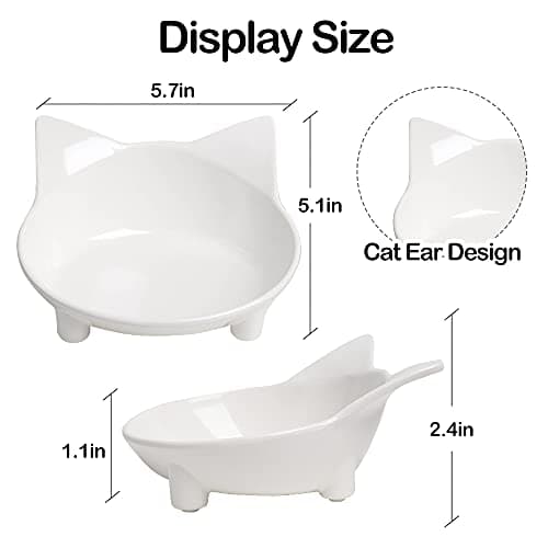Lareina Small Dog Bowls for Food and Water, 1.5 Cups Pet Bowl Set with Non-Slip Wood Stand for Your Dogs and Cats, Vanilla White
