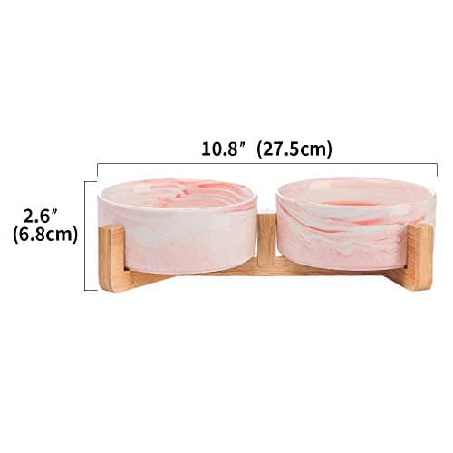 MALACASA Dog Bowl Set with Walnut Wood Stand, 1.5 Cups Ceramic Pet Bowls for Puppy Dogs, Dual Food and Water Bowls with Weighted Non-Slip Base, Basic Bowls for Your Dog or Cat, Rhombic & Polka Dots