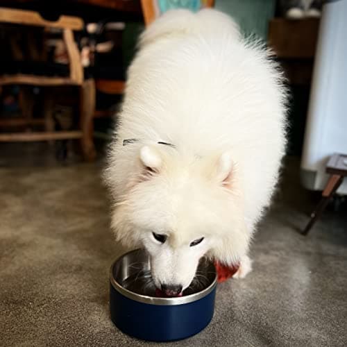 HomeRunPet Dog Bowls, Durable Dishwasher Safe Double Wall Metal Insulated Stainless Steel Food Water Bowls with Non-Slip Rubber Base, Ideal for Small Medium and Large Dogs (32oz, Navy)